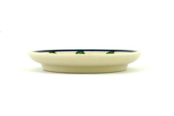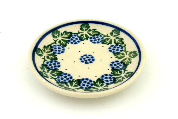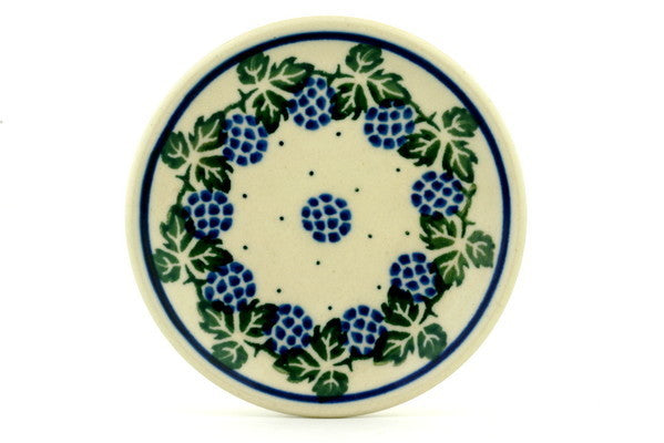This Blackberry Vines 4" Mini Plate, Coaster plate was handmade and hand decorated in Boleslawiec, Poland by skilled artisans according to old traditional methods. This Polish stoneware is microwave, dishwasher, freezer, and oven safe up to 480°F. It does not contain lead or cadmium. It is part of the Blackberry Vines Collection.