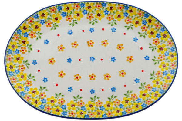 This Country Spring 10" Oval Platter was handmade and hand decorated in Boleslawiec, Poland by skilled artisans according to old traditional methods. This Polish stoneware is microwave, dishwasher, freezer, and oven safe up to 480°F. It does not contain lead or cadmium. It is part of the Country Spring Collection.
