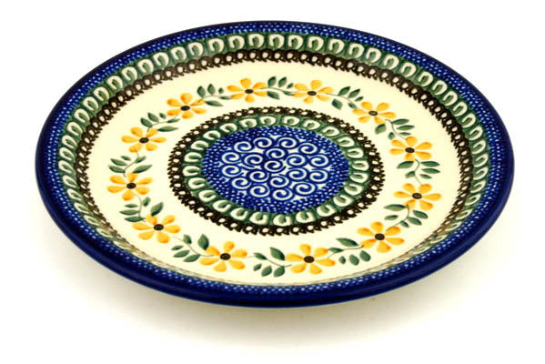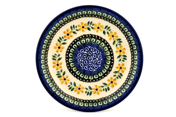 This Golden Daisy Swirl 8" Plate was handmade and hand decorated in Boleslawiec, Poland by skilled artisans according to old traditional methods. This Polish stoneware is microwave, dishwasher, freezer, and oven safe up to 480°F. It does not contain lead or cadmium. It is part of the Golden Daisy Swirl Collection.