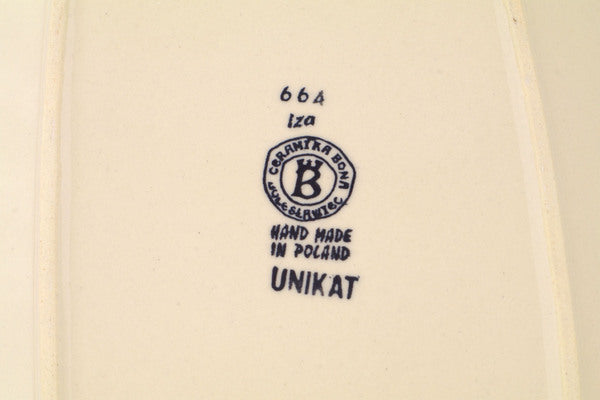 This Metamorphosis 14" Platter was handmade and hand decorated in Boleslawiec, Poland by skilled artisans according to old traditional methods. This Polish stoneware is microwave, dishwasher, freezer, and oven safe up to 480°F. It does not contain lead or cadmium. It is part of the Metamorphosis Collection.