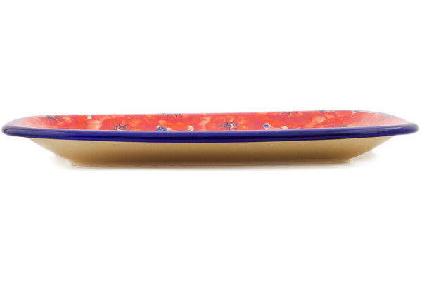 This Poppy Passion 14" Platter was handmade and hand decorated in Boleslawiec, Poland by skilled artisans according to old traditional methods. This is a Polish pottery Signature Unikat, which means that it has been hand painted with both sponges and brushes and it is signed by the artist who painted it. Unikat pieces are the most intricate works of art. Larger Unikat items take hours of very careful work to finish. This Polish stoneware is microwave, dishwasher, freezer, and oven safe up to 480°F. It does not contain lead or cadmium. It is part of the Poppy Passion Collection.
