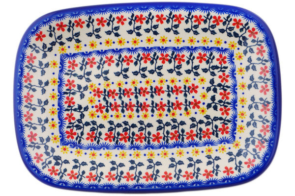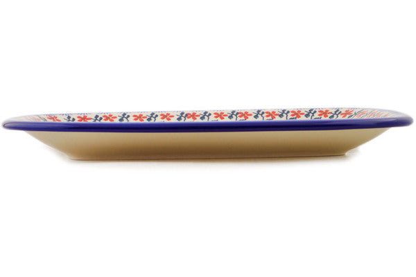 This Red Sunflower 14" Platter was handmade and hand decorated in Boleslawiec, Poland by skilled artisans according to old traditional methods. This Polish stoneware is microwave, dishwasher, freezer, and oven safe up to 480°F. It does not contain lead or cadmium. It is part of the Red Sunflower Collection.