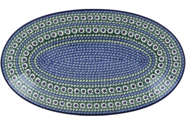 This Daises And Tall Grass 18" Platter was handmade and hand decorated in Boleslawiec, Poland by skilled artisans according to old traditional methods. This is a Polish pottery Signature Unikat, which means that it has been hand painted with both sponges and brushes and it is signed by the artist who painted it. Unikat pieces are the most intricate works of art. Larger Unikat items take hours of very careful work to finish. This Polish stoneware is microwave, dishwasher, freezer, and oven safe up to 480°F. It does not contain lead or cadmium. It is part of the Daises And Tall Grass Collection.