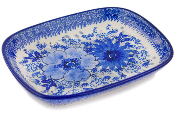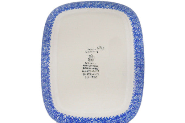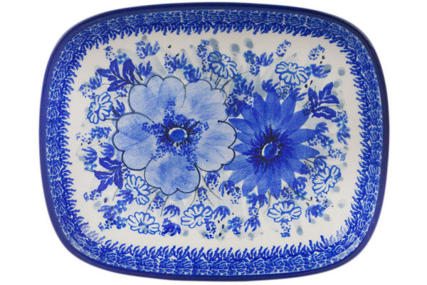 This Blue Wildflower Patch 7" Platter was handmade and hand decorated in Boleslawiec, Poland by skilled artisans according to old traditional methods. This is a Polish pottery Signature Unikat, which means that it has been hand painted with both sponges and brushes and it is signed by the artist who painted it. Unikat pieces are the most intricate works of art. Larger Unikat items take hours of very careful work to finish. This Polish stoneware is microwave, dishwasher, freezer, and oven safe up to 480°F. It does not contain lead or cadmium. It is part of the Blue Wildflower Patch Collection.