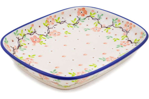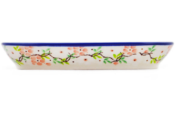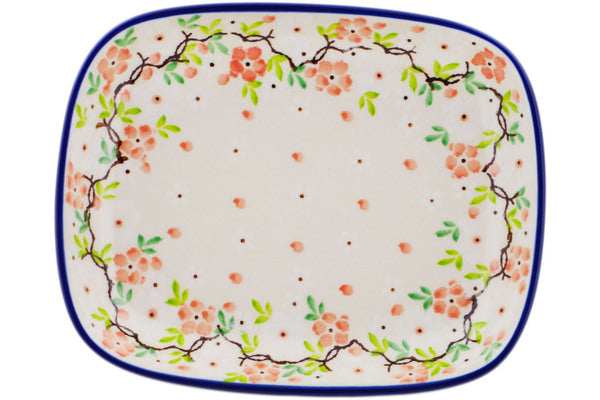 This Spring Branch 7" Platter was handmade and hand decorated in Boleslawiec, Poland by skilled artisans according to old traditional methods. This is a Polish pottery Signature Unikat, which means that it has been hand painted with both sponges and brushes and it is signed by the artist who painted it. Unikat pieces are the most intricate works of art. Larger Unikat items take hours of very careful work to finish. This Polish stoneware is microwave, dishwasher, freezer, and oven safe up to 480°F. It does not contain lead or cadmium. It is part of the Spring Branch Collection.