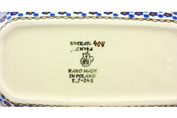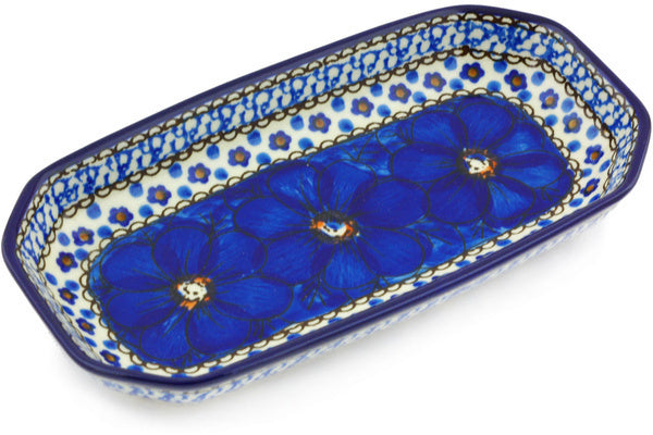 This Cobalt Poppies 8" Platter was handmade and hand decorated in Boleslawiec, Poland by skilled artisans according to old traditional methods. This is a Polish pottery Signature Unikat, which means that it has been hand painted with both sponges and brushes and it is signed by the artist who painted it. Unikat pieces are the most intricate works of art. Larger Unikat items take hours of very careful work to finish. This Polish stoneware is microwave, dishwasher, freezer, and oven safe up to 480°F. It does not contain lead or cadmium. It is part of the Cobalt Poppies Collection.