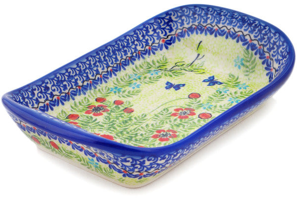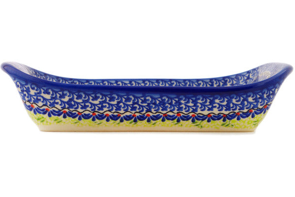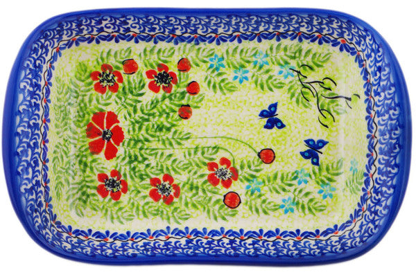 This Metamorphosis 10" Platter with Handles was handmade and hand decorated in Boleslawiec, Poland by skilled artisans according to old traditional methods. This Polish stoneware is microwave, dishwasher, freezer, and oven safe up to 480°F. It does not contain lead or cadmium. It is part of the Metamorphosis Collection.
