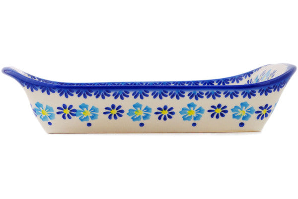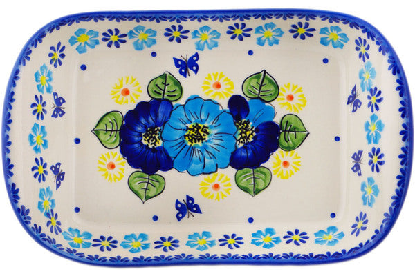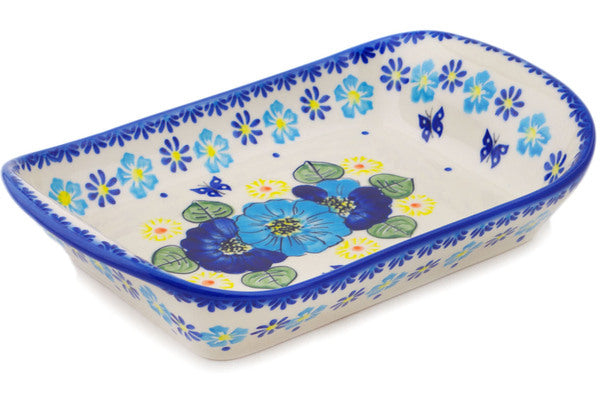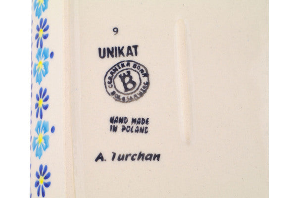 This Endless Summer 11" Platter with Handles was handmade and hand decorated in Boleslawiec, Poland by skilled artisans according to old traditional methods. This is a Polish pottery Signature Unikat, which means that it has been hand painted with both sponges and brushes and it is signed by the artist who painted it. Unikat pieces are the most intricate works of art. Larger Unikat items take hours of very careful work to finish. This Polish stoneware is microwave, dishwasher, freezer, and oven safe up to 480°F. It does not contain lead or cadmium. It is part of the Endless Summer Collection.