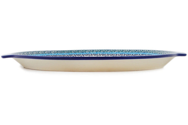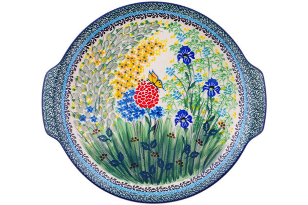 This Spring Garden 13" Platter with Handles was handmade and hand decorated in Boleslawiec, Poland by skilled artisans according to old traditional methods. This is a Polish pottery Signature Unikat, which means that it has been hand painted with both sponges and brushes and it is signed by the artist who painted it. Unikat pieces are the most intricate works of art. Larger Unikat items take hours of very careful work to finish. This Polish stoneware is microwave, dishwasher, freezer, and oven safe up to 480°F. It does not contain lead or cadmium. It is part of the Spring Garden Collection.