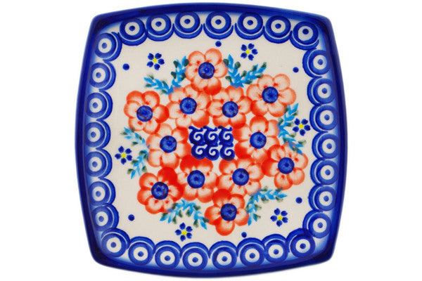 This Flower Star 7" Square Plate was handmade and hand decorated in Boleslawiec, Poland by skilled artisans according to old traditional methods. This Polish stoneware is microwave, dishwasher, freezer, and oven safe up to 480°F. It does not contain lead or cadmium. It is part of the Flower Star Collection.