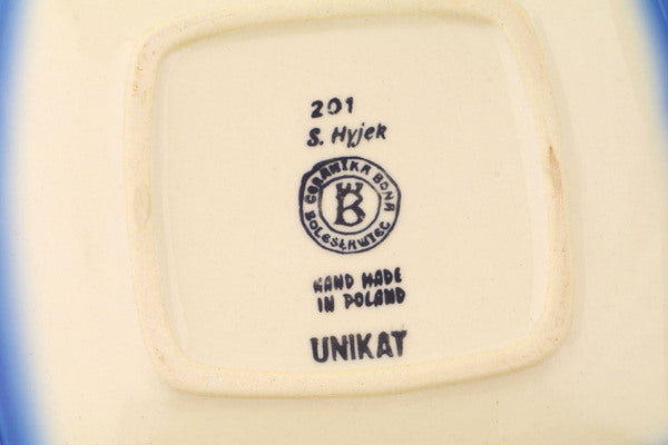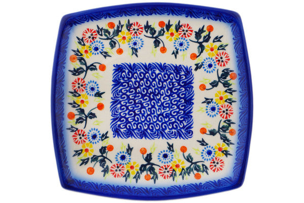 This Pastel Spring Wreath 7" Square Plate was handmade and hand decorated in Boleslawiec, Poland by skilled artisans according to old traditional methods. This Polish stoneware is microwave, dishwasher, freezer, and oven safe up to 480°F. It does not contain lead or cadmium. It is part of the Pastel Spring Wreath Collection.