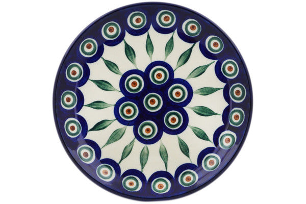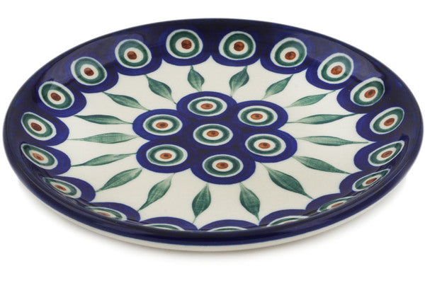 This Peacock Leaves 6" Toast Plate was handmade and hand decorated in Boleslawiec, Poland by skilled artisans according to old traditional methods. This Polish stoneware is microwave, dishwasher, freezer, and oven safe up to 480°F. It does not contain lead or cadmium. It is part of the Peacock Leaves Collection.