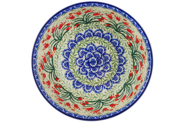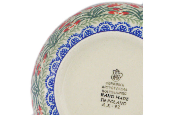This Crimson Bells 6" Bowl was handmade and hand decorated in Boleslawiec, Poland by skilled artisans according to old traditional methods. This Polish stoneware is microwave, dishwasher, freezer, and oven safe up to 480°F. It does not contain lead or cadmium. It is part of the Crimson Bells Collection.