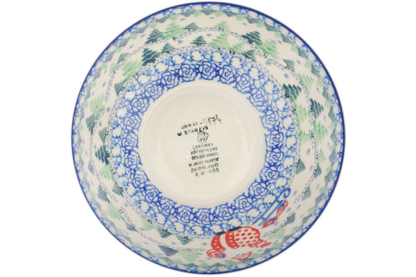 This Gift Giving 6" Bowl was handmade and hand decorated in Boleslawiec, Poland by skilled artisans according to old traditional methods. This is a Polish pottery Signature Unikat, which means that it has been hand painted with both sponges and brushes and it is signed by the artist who painted it. Unikat pieces are the most intricate works of art. Larger Unikat items take hours of very careful work to finish. This Polish stoneware is microwave, dishwasher, freezer, and oven safe up to 480°F. It does not contain lead or cadmium. It is part of the Gift Giving Collection.