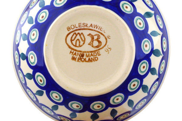This Peacock Leaves 6" Bowl was handmade and hand decorated in Boleslawiec, Poland by skilled artisans according to old traditional methods. This Polish stoneware is microwave, dishwasher, freezer, and oven safe up to 480°F. It does not contain lead or cadmium. It is part of the Peacock Leaves Collection.
