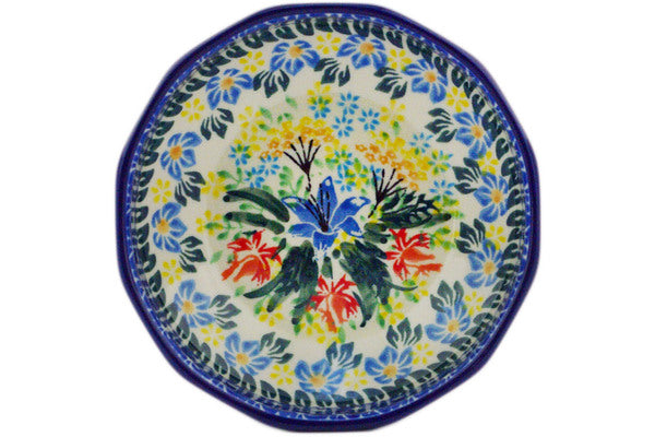 This Summer Bouquet 5" Bowl was handmade and hand decorated in Boleslawiec, Poland by skilled artisans according to old traditional methods. This is a Polish pottery Signature Unikat, which means that it has been hand painted with both sponges and brushes and it is signed by the artist who painted it. Unikat pieces are the most intricate works of art. Larger Unikat items take hours of very careful work to finish. This Polish stoneware is microwave, dishwasher, freezer, and oven safe up to 480°F. It does not contain lead or cadmium. It is part of the Summer Bouquet Collection.