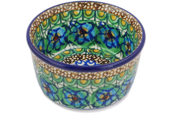 This Mardi Gras Small Ramekin Bowl was handmade and hand decorated in Boleslawiec, Poland by skilled artisans according to old traditional methods. This is a Polish pottery Signature Unikat, which means that it has been hand painted with both sponges and brushes and it is signed by the artist who painted it. Unikat pieces are the most intricate works of art. Larger Unikat items take hours of very careful work to finish. This Polish stoneware is microwave, dishwasher, freezer, and oven safe up to 480°F. It does not contain lead or cadmium. It is part of the Mardi Gras Collection.