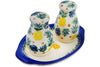 This Blue Poppies 7" Salt and Pepper 3-Piece Set was handmade and hand decorated in Boleslawiec, Poland by skilled artisans according to old traditional methods. This is a Polish pottery Signature Unikat, which means that it has been hand painted with both sponges and brushes and it is signed by the artist who painted it. Unikat pieces are the most intricate works of art. Larger Unikat items take hours of very careful work to finish. This Polish stoneware is microwave, dishwasher, freezer, and oven safe up to 480°F. It does not contain lead or cadmium. It is part of the Blue Poppies Collection.
