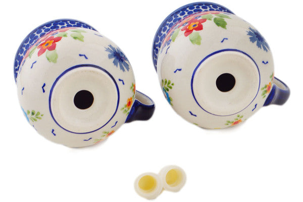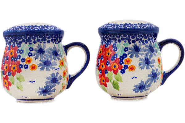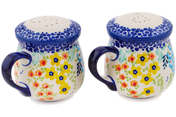 This Vibrant Hanging Garden 4" Salt and Pepper Set was handmade and hand decorated in Boleslawiec, Poland by skilled artisans according to old traditional methods. This is a Polish pottery Signature Unikat, which means that it has been hand painted with both sponges and brushes and it is signed by the artist who painted it. Unikat pieces are the most intricate works of art. Larger Unikat items take hours of very careful work to finish. This Polish stoneware is microwave, dishwasher, freezer, and oven safe up to 480°F. It does not contain lead or cadmium. It is part of the Vibrant Hanging Garden Collection.