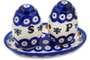 This Elegant Garland 5" Salt and Pepper Set was handmade and hand decorated in Boleslawiec, Poland by skilled artisans according to old traditional methods. This Polish stoneware is microwave, dishwasher, freezer, and oven safe up to 480°F. It does not contain lead or cadmium. It is part of the Elegant Garland Collection.
