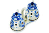 This Long Lavender 7" Salt and Pepper Set was handmade and hand decorated in Boleslawiec, Poland by skilled artisans according to old traditional methods. This is a Polish pottery Signature Unikat, which means that it has been hand painted with both sponges and brushes and it is signed by the artist who painted it. Unikat pieces are the most intricate works of art. Larger Unikat items take hours of very careful work to finish. This Polish stoneware is microwave, dishwasher, freezer, and oven safe up to 480°F. It does not contain lead or cadmium. It is part of the Long Lavender Collection.
