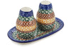 This Peeping Through 7" Salt and Pepper Set was handmade and hand decorated in Boleslawiec, Poland by skilled artisans according to old traditional methods. This is a Polish pottery Signature Unikat, which means that it has been hand painted with both sponges and brushes and it is signed by the artist who painted it. Unikat pieces are the most intricate works of art. Larger Unikat items take hours of very careful work to finish. This Polish stoneware is microwave, dishwasher, freezer, and oven safe up to 480°F. It does not contain lead or cadmium. It is part of the Peeping Through Collection.