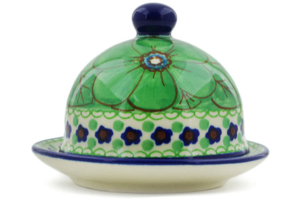 This Key Lime Dreams 4" Butter Dish was handmade and hand decorated in Boleslawiec, Poland by skilled artisans according to old traditional methods. This is a Polish pottery Signature Unikat, which means that it has been hand painted with both sponges and brushes and it is signed by the artist who painted it. Unikat pieces are the most intricate works of art. Larger Unikat items take hours of very careful work to finish. This Polish stoneware is microwave, dishwasher, freezer, and oven safe up to 480°F. It does not contain lead or cadmium. It is part of the Key Lime Dreams Collection.