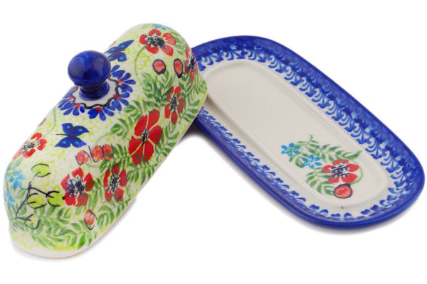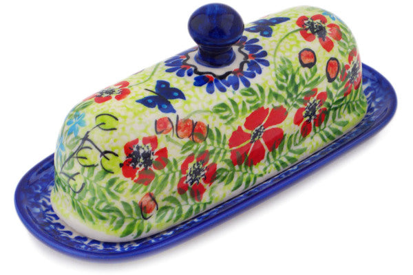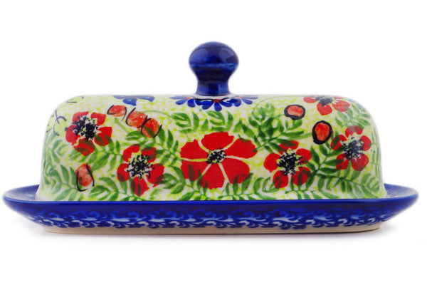 This Metamorphosis 7" Butter Dish was handmade and hand decorated in Boleslawiec, Poland by skilled artisans according to old traditional methods. This Polish stoneware is microwave, dishwasher, freezer, and oven safe up to 480°F. It does not contain lead or cadmium. It is part of the Metamorphosis Collection.
