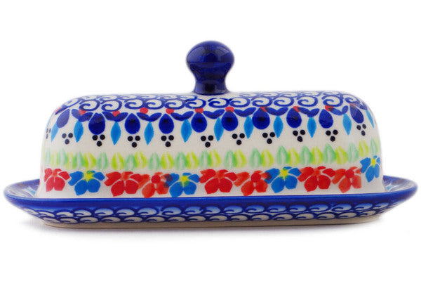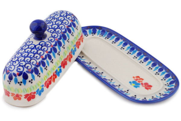 This Spring Flowers 7" Butter Dish was handmade and hand decorated in Boleslawiec, Poland by skilled artisans according to old traditional methods. This Polish stoneware is microwave, dishwasher, freezer, and oven safe up to 480°F. It does not contain lead or cadmium. It is part of the Spring Flowers Collection.