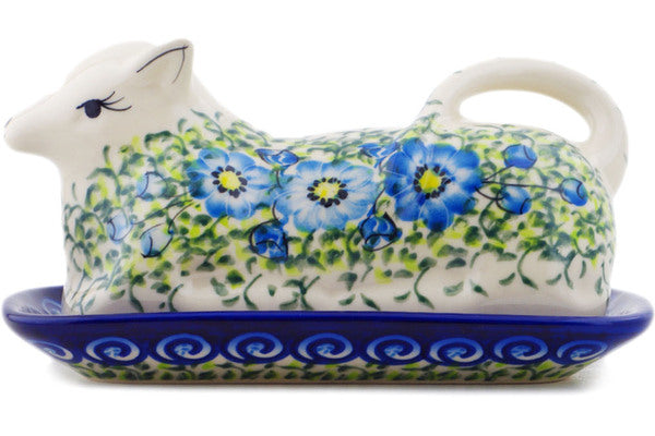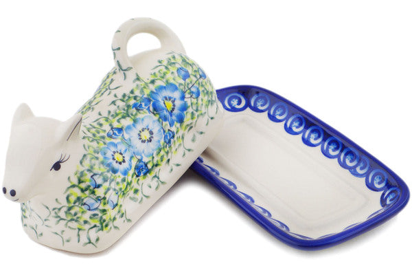This Gorgeous Morning Glory 8" Butter Dish was handmade and hand decorated in Boleslawiec, Poland by skilled artisans according to old traditional methods. This is a Polish pottery Signature Unikat, which means that it has been hand painted with both sponges and brushes and it is signed by the artist who painted it. Unikat pieces are the most intricate works of art. Larger Unikat items take hours of very careful work to finish. This Polish stoneware is microwave, dishwasher, freezer, and oven safe up to 480°F. It does not contain lead or cadmium. It is part of the Gorgeous Morning Glory Collection.