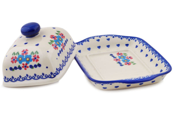 This Hearts And Flowers 8" Butter Dish was handmade and hand decorated in Boleslawiec, Poland by skilled artisans according to old traditional methods. This Polish stoneware is microwave, dishwasher, freezer, and oven safe up to 480°F. It does not contain lead or cadmium. It is part of the Hearts And Flowers Collection.
