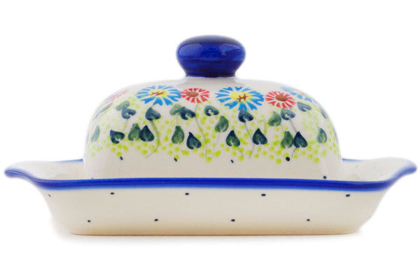 This Long-stemmed Beauties 8" Butter Dish was handmade and hand decorated in Boleslawiec, Poland by skilled artisans according to old traditional methods. This Polish stoneware is microwave, dishwasher, freezer, and oven safe up to 480°F. It does not contain lead or cadmium. It is part of the Long-stemmed Beauties Collection.