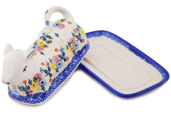This Pastel Spring Wreath 8" Butter Dish was handmade and hand decorated in Boleslawiec, Poland by skilled artisans according to old traditional methods. This Polish stoneware is microwave, dishwasher, freezer, and oven safe up to 480°F. It does not contain lead or cadmium. It is part of the Pastel Spring Wreath Collection.