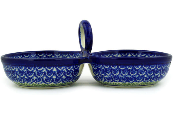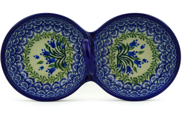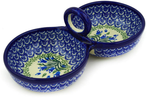 This Feathery Bluebells 10" Condiment Dish was handmade and hand decorated in Boleslawiec, Poland by skilled artisans according to old traditional methods. This Polish stoneware is microwave, dishwasher, freezer, and oven safe up to 480°F. It does not contain lead or cadmium. It is part of the Feathery Bluebells Collection.