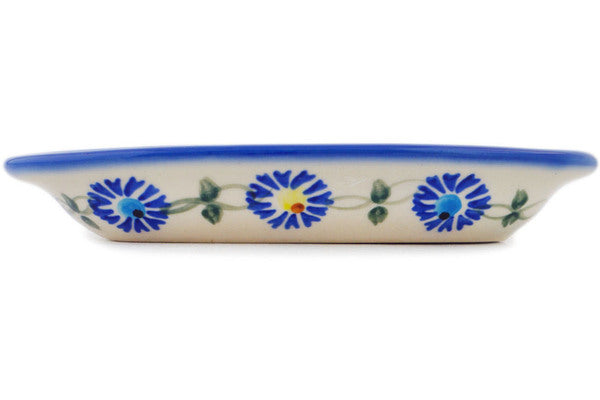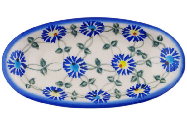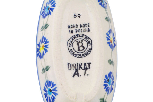 This Blue Thistle Beauty 6" Condiment Dish was handmade and hand decorated in Boleslawiec, Poland by skilled artisans according to old traditional methods. This Polish stoneware is microwave, dishwasher, freezer, and oven safe up to 480°F. It does not contain lead or cadmium. It is part of the Blue Thistle Beauty Collection.