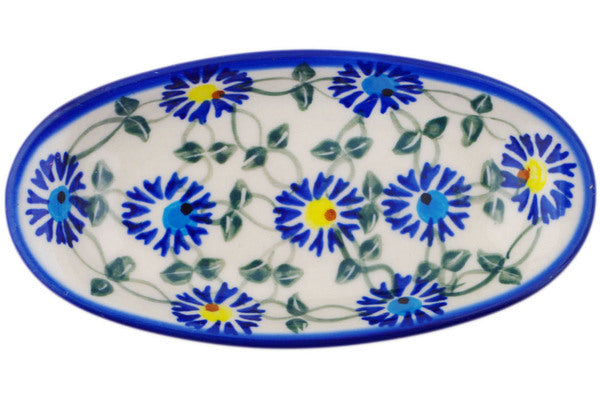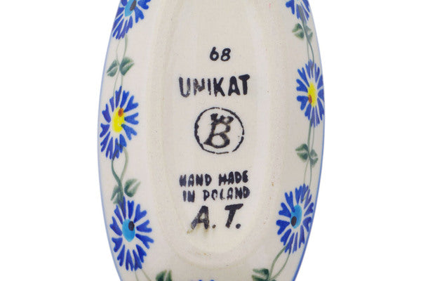 This Blue Thistle Beauty 6" Condiment Dish was handmade and hand decorated in Boleslawiec, Poland by skilled artisans according to old traditional methods. This Polish stoneware is microwave, dishwasher, freezer, and oven safe up to 480°F. It does not contain lead or cadmium. It is part of the Blue Thistle Beauty Collection.