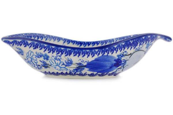 This Blue Wildflower Patch 6" Condiment Dish was handmade and hand decorated in Boleslawiec, Poland by skilled artisans according to old traditional methods. This is a Polish pottery Signature Unikat, which means that it has been hand painted with both sponges and brushes and it is signed by the artist who painted it. Unikat pieces are the most intricate works of art. Larger Unikat items take hours of very careful work to finish. This Polish stoneware is microwave, dishwasher, freezer, and oven safe up to 480°F. It does not contain lead or cadmium. It is part of the Blue Wildflower Patch Collection.