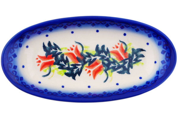 This California Poppies 6" Condiment Dish was handmade and hand decorated in Boleslawiec, Poland by skilled artisans according to old traditional methods. This Polish stoneware is microwave, dishwasher, freezer, and oven safe up to 480°F. It does not contain lead or cadmium. It is part of the California Poppies Collection.