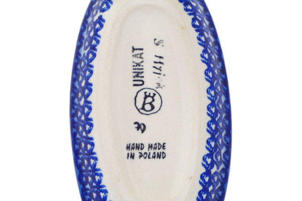 This Blue Kiss Blooms 7" Condiment Dish was handmade and hand decorated in Boleslawiec, Poland by skilled artisans according to old traditional methods. This Polish stoneware is microwave, dishwasher, freezer, and oven safe up to 480°F. It does not contain lead or cadmium. It is part of the Blue Kiss Blooms Collection.