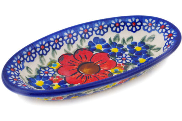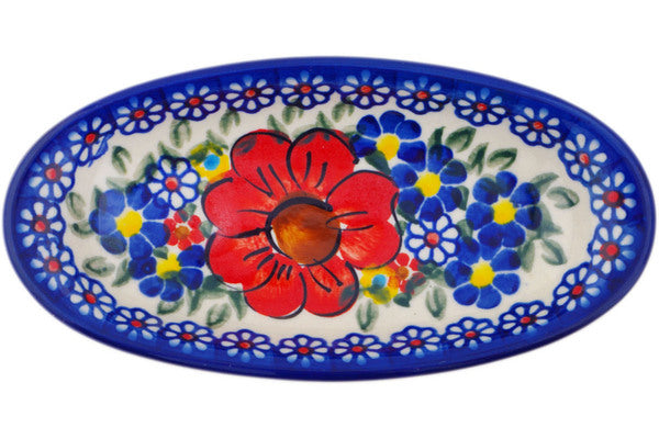 This Bold Sights 7" Condiment Dish was handmade and hand decorated in Boleslawiec, Poland by skilled artisans according to old traditional methods. This is a Polish pottery Signature Unikat, which means that it has been hand painted with both sponges and brushes and it is signed by the artist who painted it. Unikat pieces are the most intricate works of art. Larger Unikat items take hours of very careful work to finish. This Polish stoneware is microwave, dishwasher, freezer, and oven safe up to 480°F. It does not contain lead or cadmium. It is part of the Bold Sights Collection.