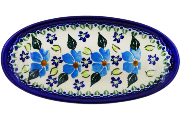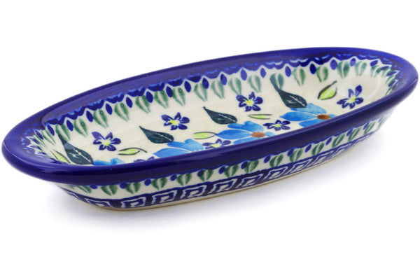 This Pansy Morning 7" Condiment Dish was handmade and hand decorated in Boleslawiec, Poland by skilled artisans according to old traditional methods. This Polish stoneware is microwave, dishwasher, freezer, and oven safe up to 480°F. It does not contain lead or cadmium. It is part of the Pansy Morning Collection.