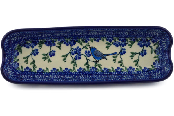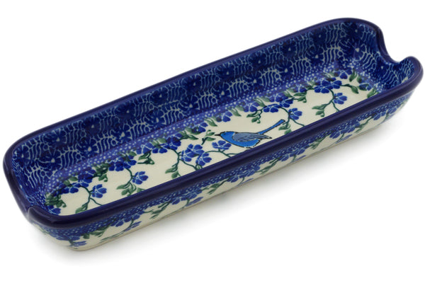 This Baby Blue Bird 8" Corn Tray was handmade and hand decorated in Boleslawiec, Poland by skilled artisans according to old traditional methods. This Polish stoneware is microwave, dishwasher, freezer, and oven safe up to 480°F. It does not contain lead or cadmium. It is part of the Baby Blue Bird Collection.