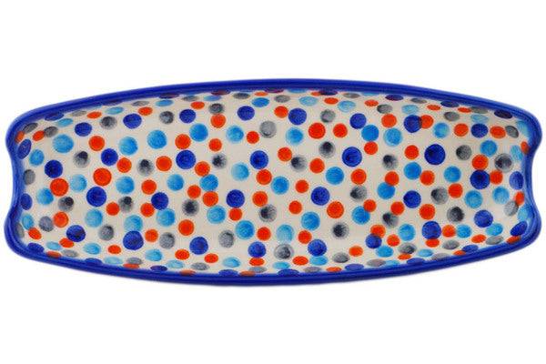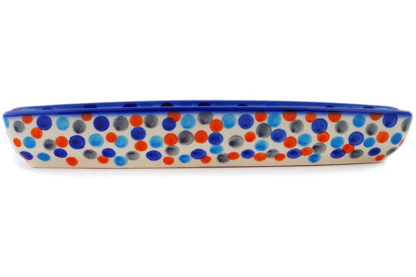 This Polka Dot Frenzy 9" Corn Tray was handmade and hand decorated in Boleslawiec, Poland by skilled artisans according to old traditional methods. This Polish stoneware is microwave, dishwasher, freezer, and oven safe up to 480°F. It does not contain lead or cadmium. It is part of the Polka Dot Frenzy Collection.