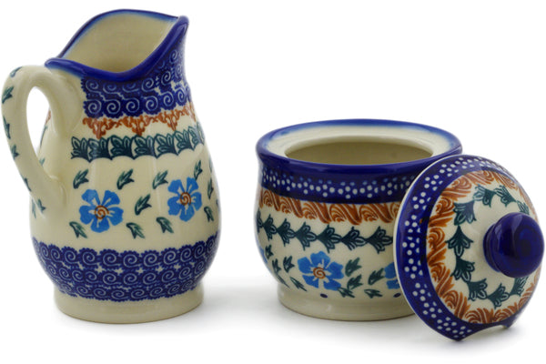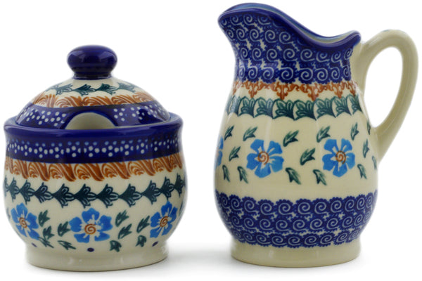 This Blue Cornflower Cream & Sugar Set was handmade and hand decorated in Boleslawiec, Poland by skilled artisans according to old traditional methods. This Polish stoneware is microwave, dishwasher, freezer, and oven safe up to 480°F. It does not contain lead or cadmium. It is part of the Blue Cornflower Collection.