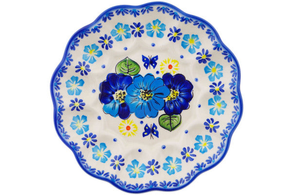 This Endless Summer 8" Egg Plate was handmade and hand decorated in Boleslawiec, Poland by skilled artisans according to old traditional methods. This is a Polish pottery Signature Unikat, which means that it has been hand painted with both sponges and brushes and it is signed by the artist who painted it. Unikat pieces are the most intricate works of art. Larger Unikat items take hours of very careful work to finish. This Polish stoneware is microwave, dishwasher, freezer, and oven safe up to 480°F. It does not contain lead or cadmium. It is part of the Endless Summer Collection.