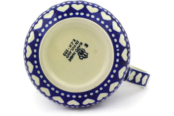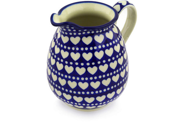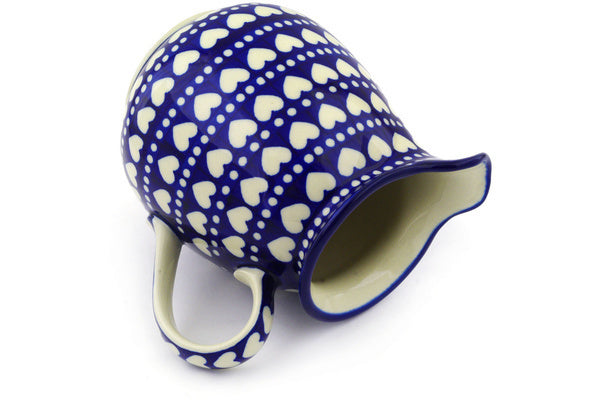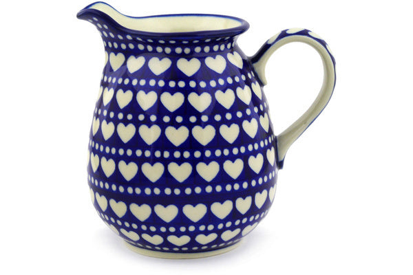 This Heart To Heart 3½ cups Pitcher was handmade and hand decorated in Boleslawiec, Poland by skilled artisans according to old traditional methods. This Polish stoneware is microwave, dishwasher, freezer, and oven safe up to 480°F. It does not contain lead or cadmium. It is part of the Heart To Heart Collection.