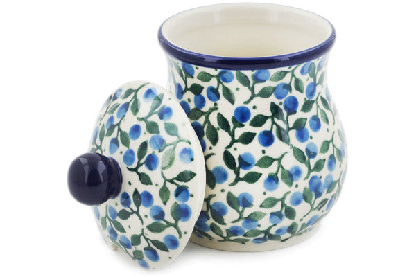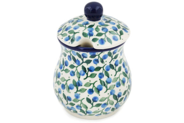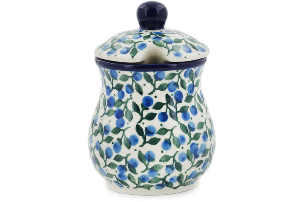 This Blueberry Vine 5 oz Sugar Bowl was handmade and hand decorated in Boleslawiec, Poland by skilled artisans according to old traditional methods. This Polish stoneware is microwave, dishwasher, freezer, and oven safe up to 480°F. It does not contain lead or cadmium. It is part of the Blueberry Vine Collection.