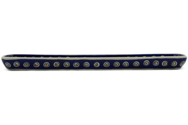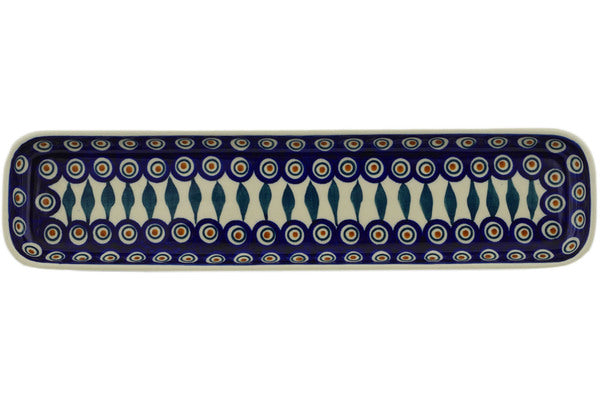 This Peacock Leaves 16" Tray was handmade and hand decorated in Boleslawiec, Poland by skilled artisans according to old traditional methods. This Polish stoneware is microwave, dishwasher, freezer, and oven safe up to 480°F. It does not contain lead or cadmium. It is part of the Peacock Leaves Collection.
