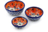 This Lemon Poppies Set of 6 Bowls was handmade and hand decorated in Boleslawiec, Poland by skilled artisans according to old traditional methods. This is a Polish pottery Signature Unikat, which means that it has been hand painted with both sponges and brushes and it is signed by the artist who painted it. Unikat pieces are the most intricate works of art. Larger Unikat items take hours of very careful work to finish. This Polish stoneware is microwave, dishwasher, freezer, and oven safe up to 480°F. It does not contain lead or cadmium. It is part of the Lemon Poppies Collection.