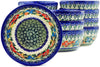 This Peacock Tulip Garden Set of 12 Bowls was handmade and hand decorated in Boleslawiec, Poland by skilled artisans according to old traditional methods. This Polish stoneware is microwave, dishwasher, freezer, and oven safe up to 480°F. It does not contain lead or cadmium. It is part of the Peacock Tulip Garden Collection.